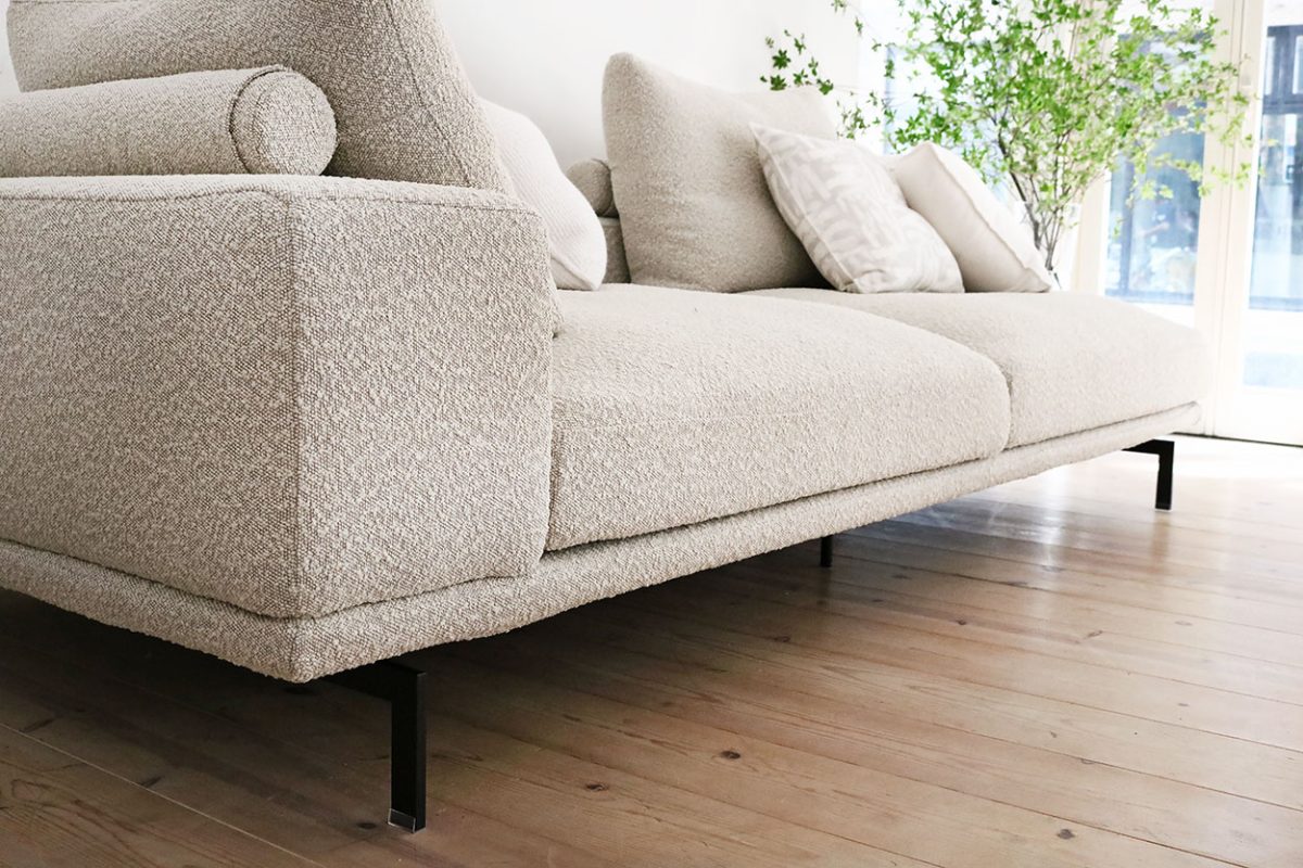 スタイリッシュな鉄脚に加え、ソファ本体の高さを抑えたデザインの為、ボリューミーでありながら圧迫感は感じません。
